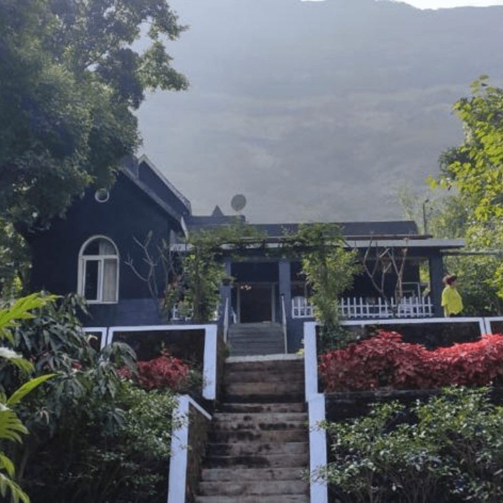 A European retreat 4bhk bungalow facing the mountains along with spacious lawn area. In monsoon the bungalow has water fall view from bed rooms.